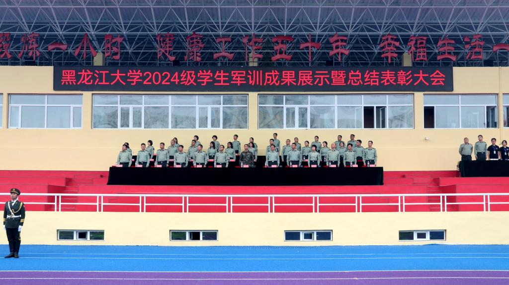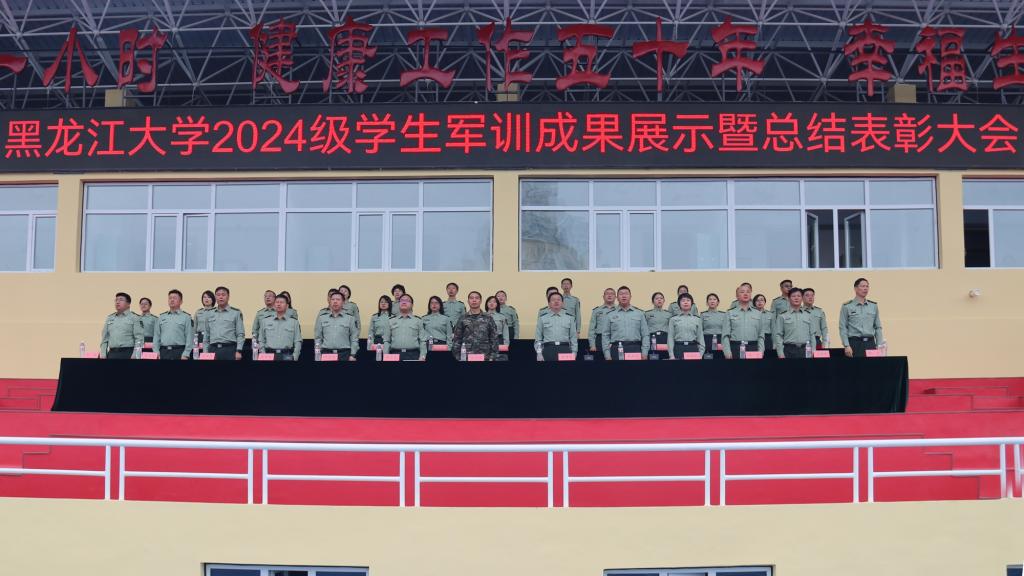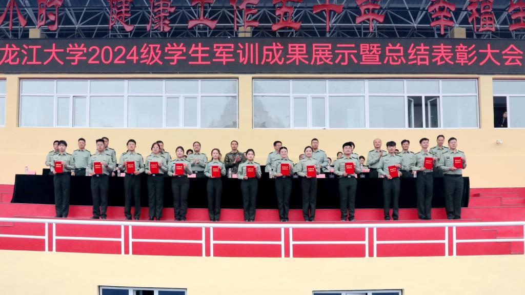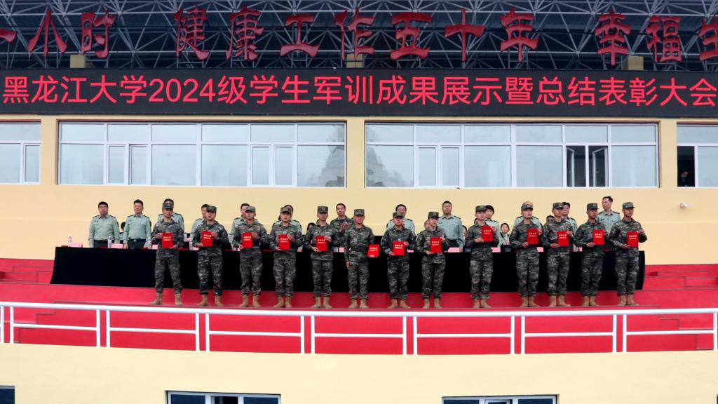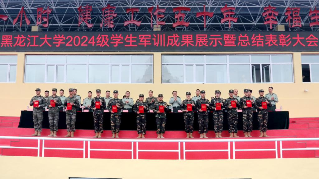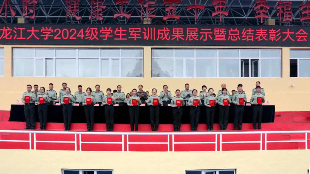校團(tuán)委書(shū)記、軍訓(xùn)師政治部副主任李可寶宣讀了黑龍江大學(xué)2024級(jí)學(xué)生軍訓(xùn)文體活動(dòng)比賽成績(jī)。校黨委常委、宣傳部部長(zhǎng)、軍訓(xùn)師政治部主任楊其濱宣讀了《關(guān)于表彰黑龍江大學(xué)2024級(jí)學(xué)生軍訓(xùn)先進(jìn)集體和先進(jìn)個(gè)人的決定》。與會(huì)領(lǐng)導(dǎo)為獲獎(jiǎng)集體和個(gè)人頒獎(jiǎng)。