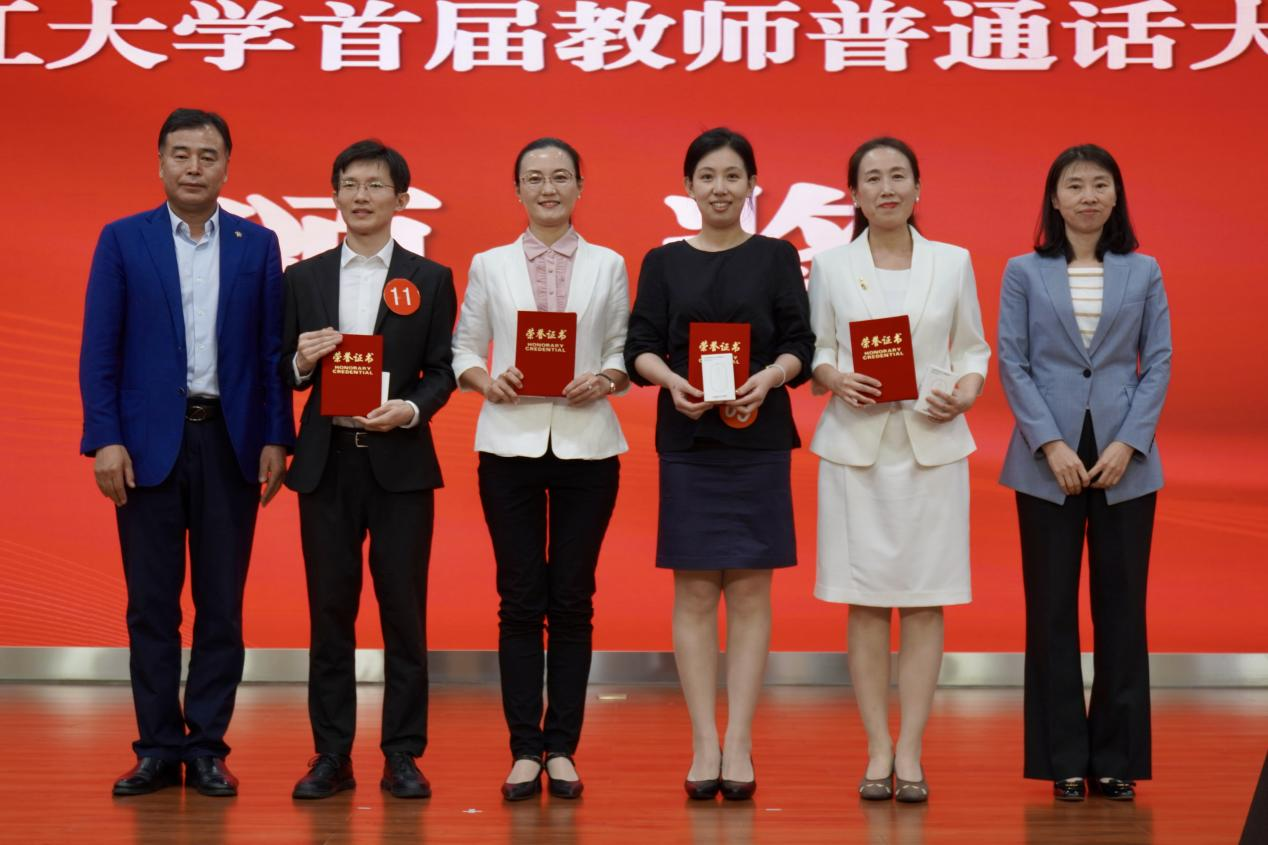 9月19日下午,黑龍江大學(xué)首屆教師普通話大賽決賽在主樓一樓報告廳舉行。本次大賽邀請文學(xué)院、國家語言文字推廣基地(黑龍江大學(xué))相關(guān)領(lǐng)導(dǎo)和老師擔(dān)任評委。校黨委副書記李君明、人事處處長張晶平、教務(wù)處處長吳華洋、文學(xué)院黨委書記孫艷華、文學(xué)院院長韓偉出席比賽并為獲獎選手頒獎。人事處(教師工作部)、教務(wù)處、文學(xué)院的有關(guān)領(lǐng)導(dǎo)老師以及學(xué)校部分單位的領(lǐng)導(dǎo)和老師出席比賽,一同見證了選手們的精彩表現(xiàn)。
