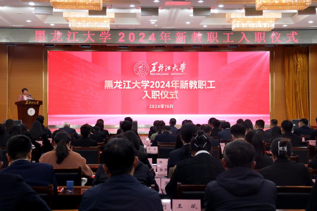 10月15日下午,黑龍江大學在主樓一樓報告廳舉行2024年新教職工入職儀式。校領導遲寶旭、王敬波、李君明、梁東輝、李卓,2024年新入職教職工,相關單位負責人和教職工代表出席本次儀式。儀式由校黨委副書記李君明主持。