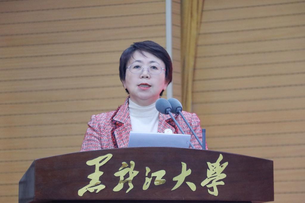 校長王敬波致辭。她代表學校向全體新教職工表示熱烈的歡迎和美好的祝福。為幫助新教職工更好地了解學校,王敬波從三方面介紹了“黑大印象”:一是黑大有紅色基因,有家國情懷,有不斷堅守的行穩致遠、弦歌不輟的價值追求。歷經83年艱難求索,學校始終與國家民族命運休戚與共,未來學校將繼續履行歷史責任,肩負時代使命;二是黑大有良師大家,有勇毅學子,有不斷積淀的躬耕不輟、追求卓越的意志品格。學校堅守為黨育人、為國育才的初心使命,黑大教師也始終以“擇一事,終一生”的職業操守和工匠精神,發揮自身最大的力量與能量;三是黑大有人文氣息,有自由氣質,有不斷蘊蓄的尊師重教、崇智尚學的精神家園。學校堅持人才強校戰略,為建設專業化高素質教師隊伍布局謀篇,形成了“人人皆可成才、人人盡展其才、人人享受尊重”的蔚然校風。王敬波表示,全體新教職工既要做傳道授業解惑的教書匠,還要做用心用情用愛的管理者,更要做學生為學為事為人的大先生。希望新教職工在黑龍江大學的“大舞臺”演繹“大夢想”,成就更美好的自己,收獲更精彩的人生。
