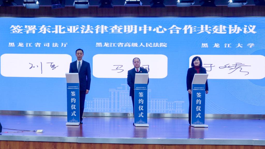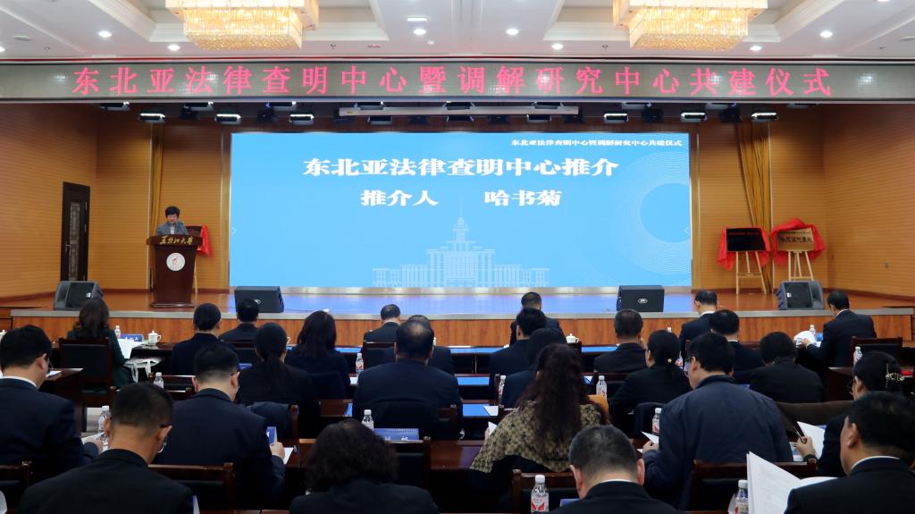 11月4日,東北地區首家由黑龍江大學與黑龍江省高級人民法院、黑龍江省司法廳聯合共建的東北亞法律查明中心暨調解研究中心成立儀式在我校舉行。校黨委書記遲寶旭、省人民法院副院長馬國、省司法廳副廳長劉勇出席并致辭。省公安廳副廳長蔣建國、省國資委副主任梁凱、省工商聯副主席韋紅兵、省法學會專職副會長冷秀艷、省外事辦二級巡視員朱平、省商務廳二級巡視員駱慶勇、副校長于文秀出席共建儀式。儀式由法學院黨委書記孫世萍主持。