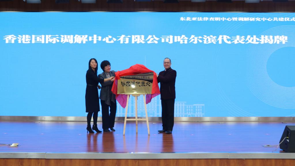 各方代表為東北亞法律查明中心、調解研究中心、香港國際調解中心哈爾濱代表處揭牌。