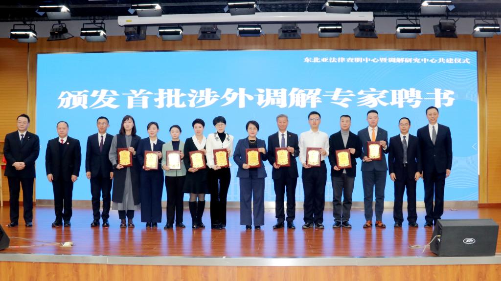 儀式上,與會領導還為首批47名涉外調解員代表頒發了聘書。