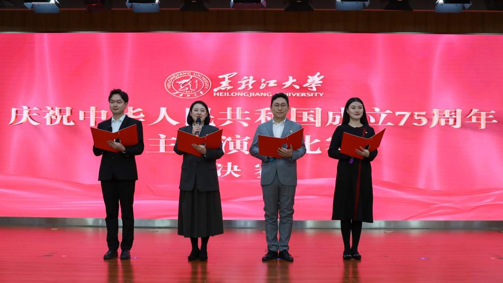 11月15日下午,黑龍江大學慶祝中華人民共和國成立75周年主題演講比賽決賽在主樓一樓報告廳舉辦。校黨委副書記劉鳳影出席活動,校黨委常委、宣傳部部長楊其濱、校團委書記李可寶、招生就業(yè)指導中心主任陳寶鳳、校黨委組織部副部長鄭建華、校黨委學生工作部副部長張希坤擔任比賽評委。各學院主管學生工作領導、輔導員和學生黨員、學生干部代表到場觀看比賽。