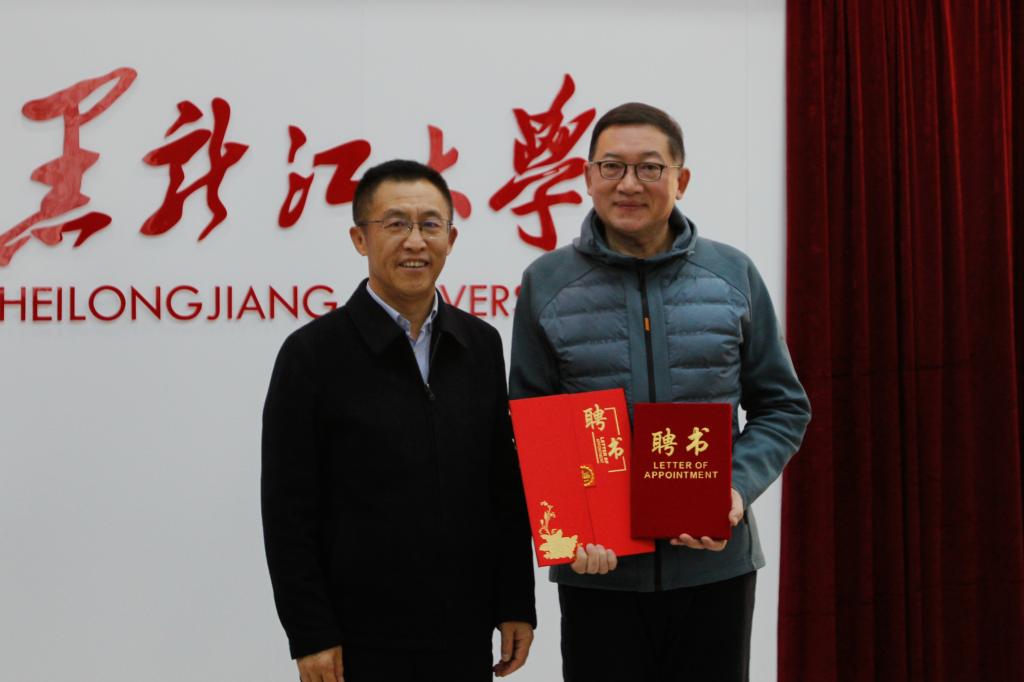 講座開始前,學校在主樓A802會議室舉行了馮雪松先生黑龍江大學客座教授聘任儀式并進行座談。與會雙方圍繞融媒體實驗室平臺建設、科研成果與優秀名師宣傳和相關主題策劃等方面達成了合作意向。校黨委書記遲寶旭為馮雪松頒發“黑龍江大學新聞傳播專業客座教授”“黑龍江大學新聞與傳播碩士專業學位行業導師”聘書,校黨委副書記劉鳳影接受馮雪松先生贈書。