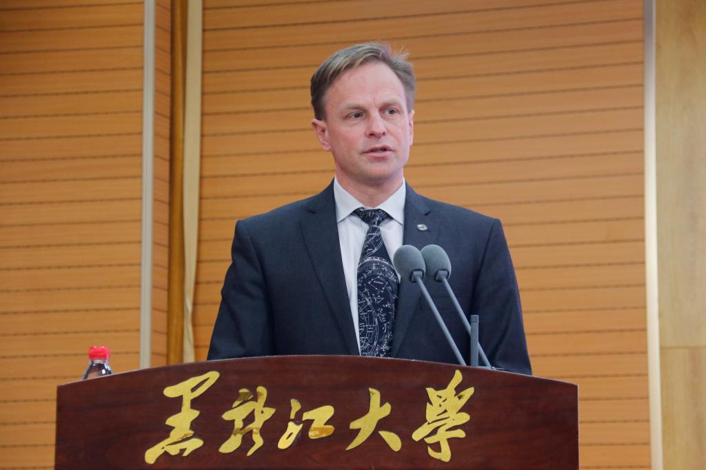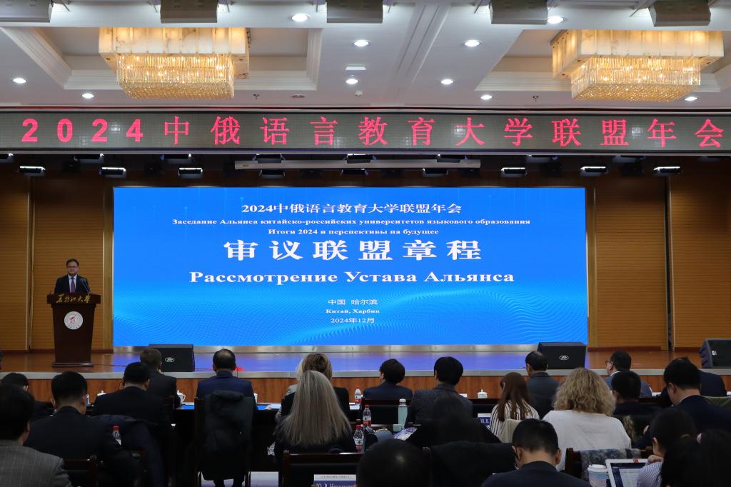 12月11日上午,2024中俄語言教育大學聯(lián)盟年會在黑龍江大學主樓一樓報告廳召開。黑龍江省教育廳副廳長曹疊峰,莫斯科國立語言大學第一副校長佩特魯恰克,西伯利亞聯(lián)邦大學副校長韋爾哈韋茨,坦波夫國立大學副校長古謝夫,黑龍江大學校長王敬波,北京第二外國語學院校長計金標,廣東外語外貿大學副校長劉建達,延邊大學副校長張學武,貴州師范大學副校長乙引,以及中俄雙方30余所高校100余名代表出席會議。本次會議由黑龍江大學副校長井立強主持。