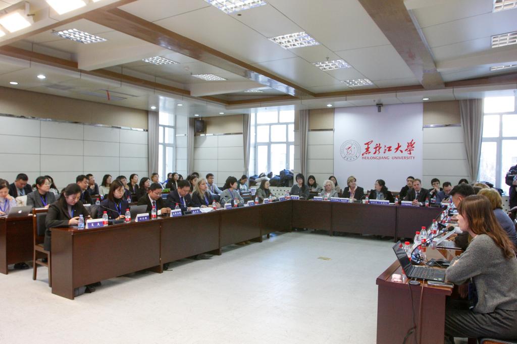12月11日下午,在黑龍江大學主樓A226召開了中俄語言教育研討會。此次研討會圍繞商討聯(lián)合開展聯(lián)盟活動、中俄語言教育合作兩個議題展開,分別由黑龍江大學國際合作與交流處處長孫秋花,莫斯科國立語言大學國際合作與國際化處長紹基娜和東北師范大學外國語學院副院長高國翠,伊爾庫茨克國立理工大學俄語語言教學系主任、預科部主任安東諾娃主持。各高校發(fā)言代表圍繞對俄合作、對華合作、未來大學聯(lián)盟工作設想、在華俄文教育、在俄中文教育等內容熱烈討論。