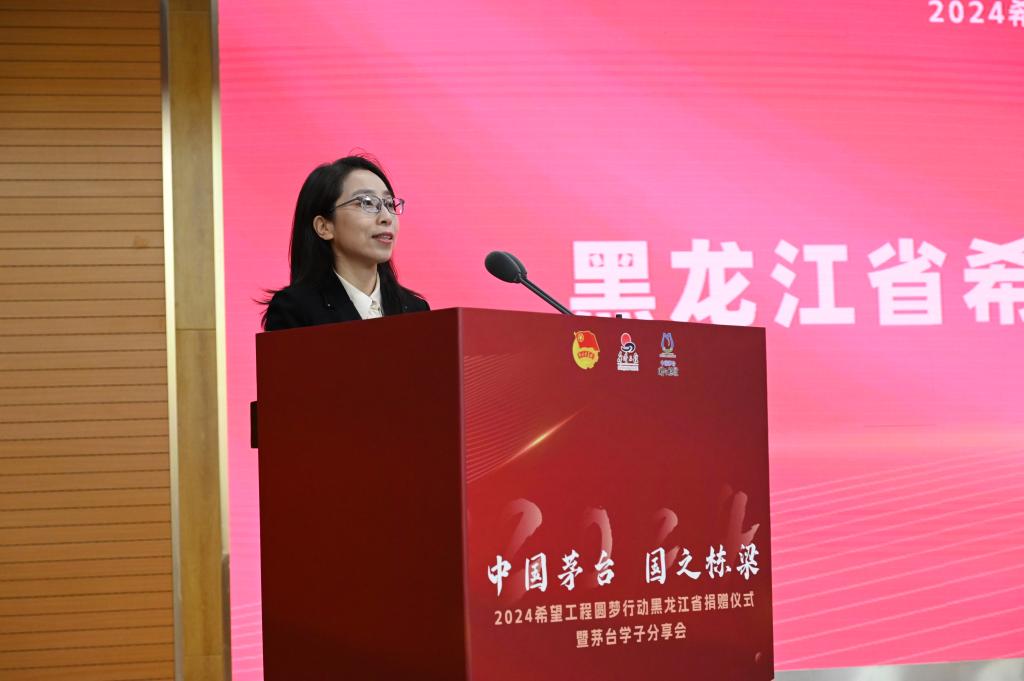 劉鳳影在致辭中表示,近年來,團省委與省青基會統籌謀劃、積極作為,全力協調各方資源,在黑龍江大學廣泛開展實施了多個資助項目,為青年學生成長成才提供了切實有效的支持保障。貴州茅臺作為國有知名企業,始終秉持高度的民族使命感和社會責任感,積極投身公益事業,用實際行動詮釋了國有企業的擔當大愛。