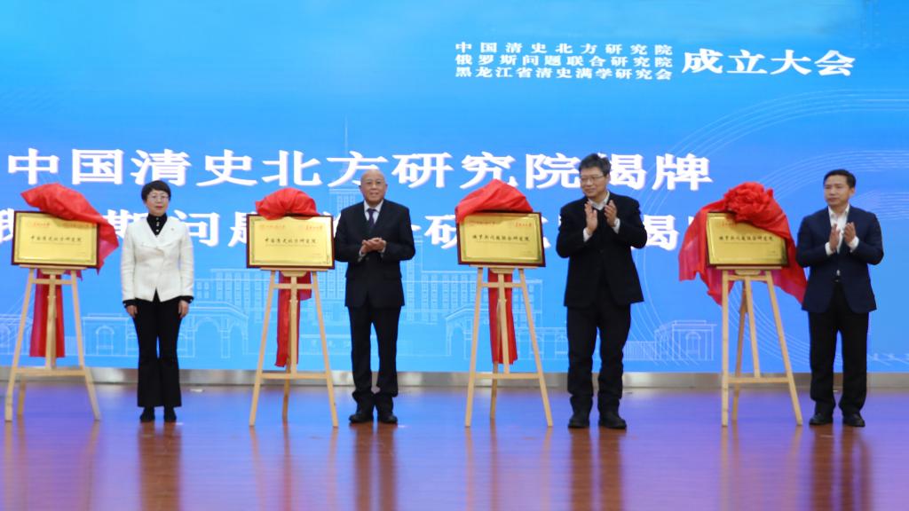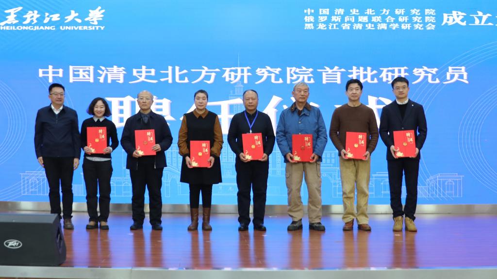 會上,與會嘉賓為中國清史北方研究院、俄羅斯問題聯合研究院和黑龍江省清史滿學研究會揭牌,并向研究員代表頒發聘書。