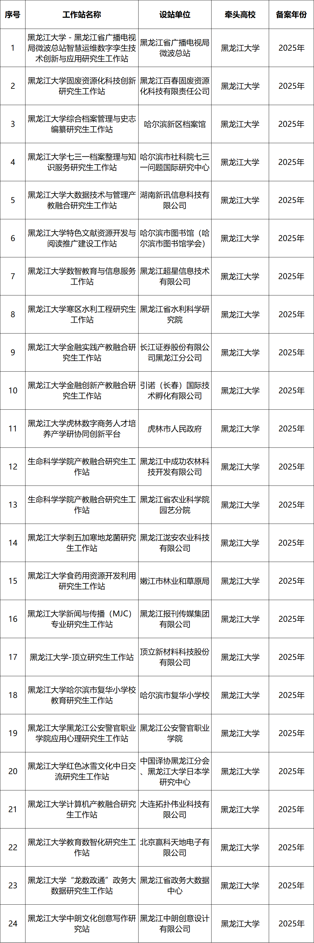 7月15日,我校接到省教育廳《關于備案2025年度黑龍江省產教融合研究生工作站的通知》,通知公布了2025年度黑龍江省產教融合研究生工作站備案名單,全省共備案270個研究生工作站,我校獲批24個。
