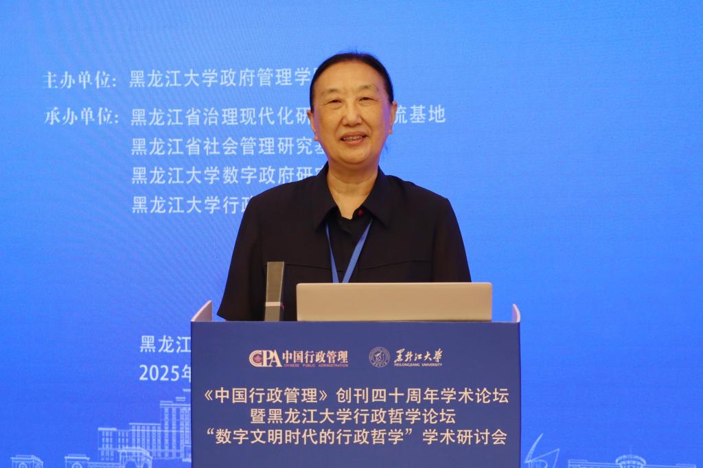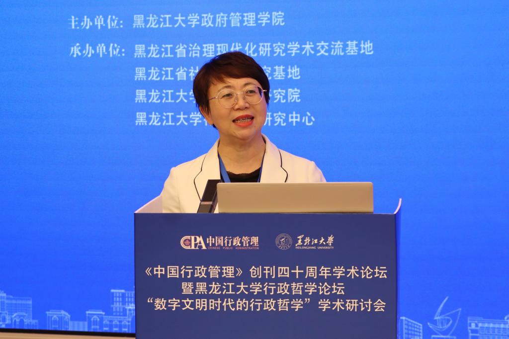 黑龍江大學校長王敬波在開幕式上致辭。她向與會嘉賓致以誠摯的感謝,向《中國行政管理》雜志社創刊四十周年表達了熱烈的祝賀。她指出,《中國行政管理》雜志為學界與實務界搭建了重要的交流平臺,推動了公共管理學科的繁榮發展,黑龍江大學公共管理學科的發展離不開《中國行政管理》雜志與學界同仁的大力支持。她指出,行政哲學研究是黑龍江大學公共管理學科的特色名片,希望學院學科未來立足龍江、服務地方,助力地方治理發展水平提升。