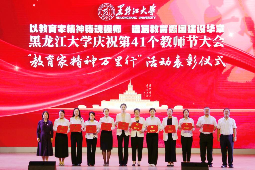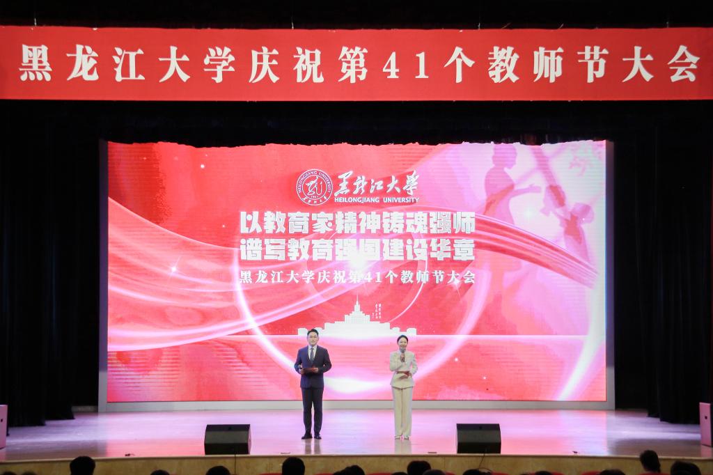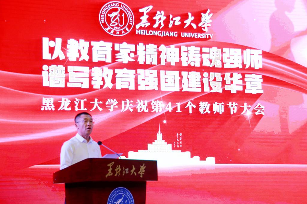 校長王敬波致辭。她向全校教職工致以節日問候,向老教師、老前輩們致以敬意,向新入職的各位教職工致以歡迎。王敬波表示,教育家精神是對教育初心的永恒守望,是對學問真理的上下求索,是對學子生命的深切關懷,是對教育使命的勇毅擔當。她號召,全體教職工要堅守立德樹人初心,擔當為黨育人、為國育才使命,在黑大這片熱土上、在教育的長路上,共同書寫教育報國的壯麗詩篇。