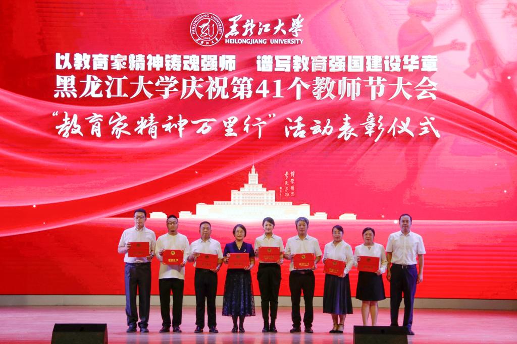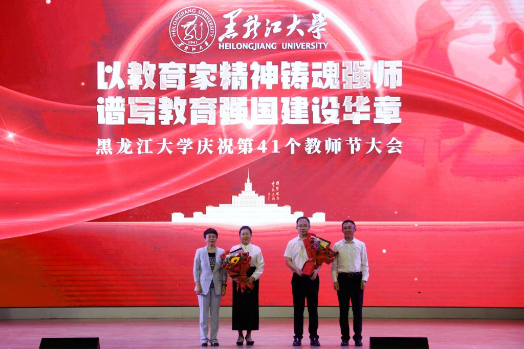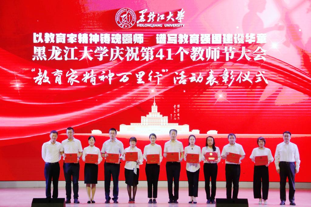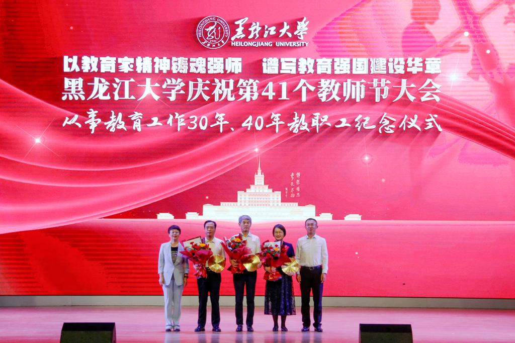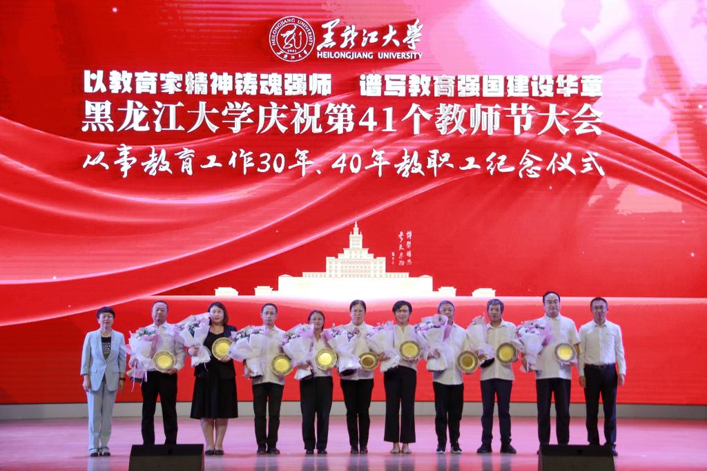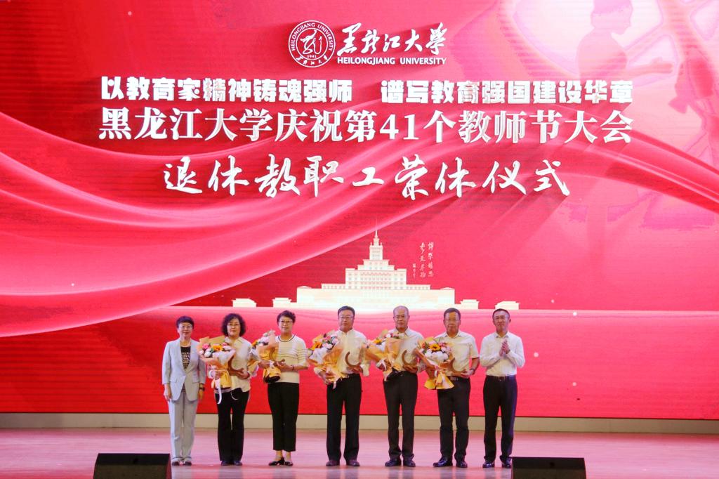 在學校84年的辦學歷程里,一代代黑大人薪火相傳、躬耕教壇、佳績頻出,他們在育人陣地上默默耕耘。在退休教職工榮休儀式上,校黨委書記遲寶旭、校長王敬波為榮休教師代表頒發紀念牌。