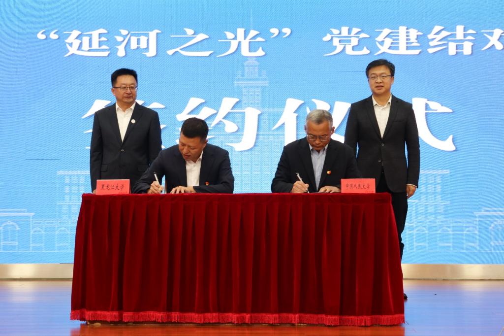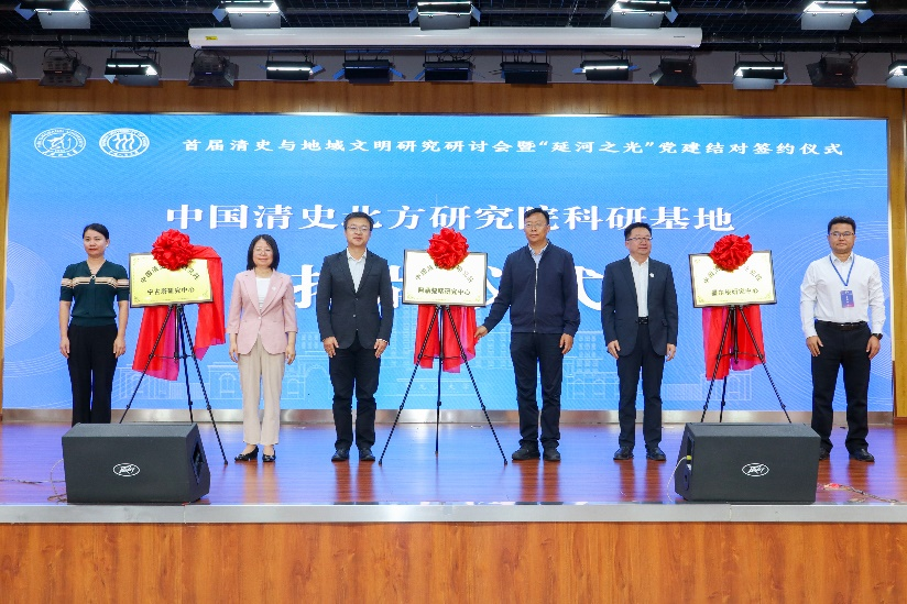 會(huì)上,與會(huì)領(lǐng)導(dǎo)共同為中國清史北方研究院科研基地阿勒楚喀研究中心、墨爾根研究中心、寧古塔研究中心揭牌。同期,在領(lǐng)導(dǎo)見證下,中國人民大學(xué)歷史學(xué)院與黑龍江大學(xué)歷史文化旅游學(xué)院進(jìn)行“延河之光”黨建結(jié)對簽約。