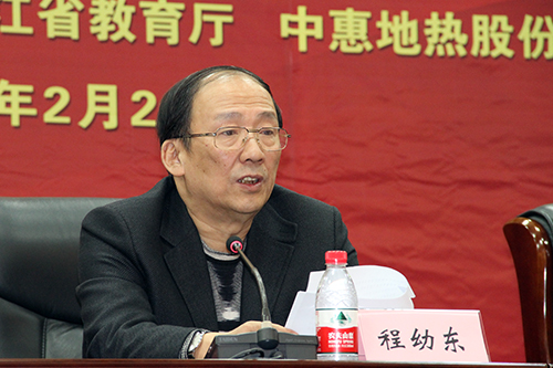 省政協(xié)副主席、民進(jìn)省委主委程幼東首先致辭。他指出,為貫徹落實綠色發(fā)展理念,中惠地?zé)嶙鳛橛擅襁M(jìn)會員創(chuàng)辦的清潔能源供暖行業(yè)的領(lǐng)軍企業(yè),為全國十余省份捐贈價值2億元的供熱產(chǎn)品及服務(wù),用實際行動踐行綠色環(huán)保發(fā)展理念,助力實現(xiàn)打贏扶貧攻堅戰(zhàn)的政治任務(wù)。