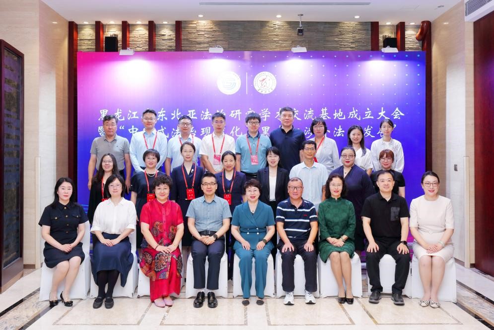 黑龍江大學校長王敬波、黑龍江省社科聯副主席王宏宇為“黑龍江省東北亞法治研究學術交流基地”揭牌。