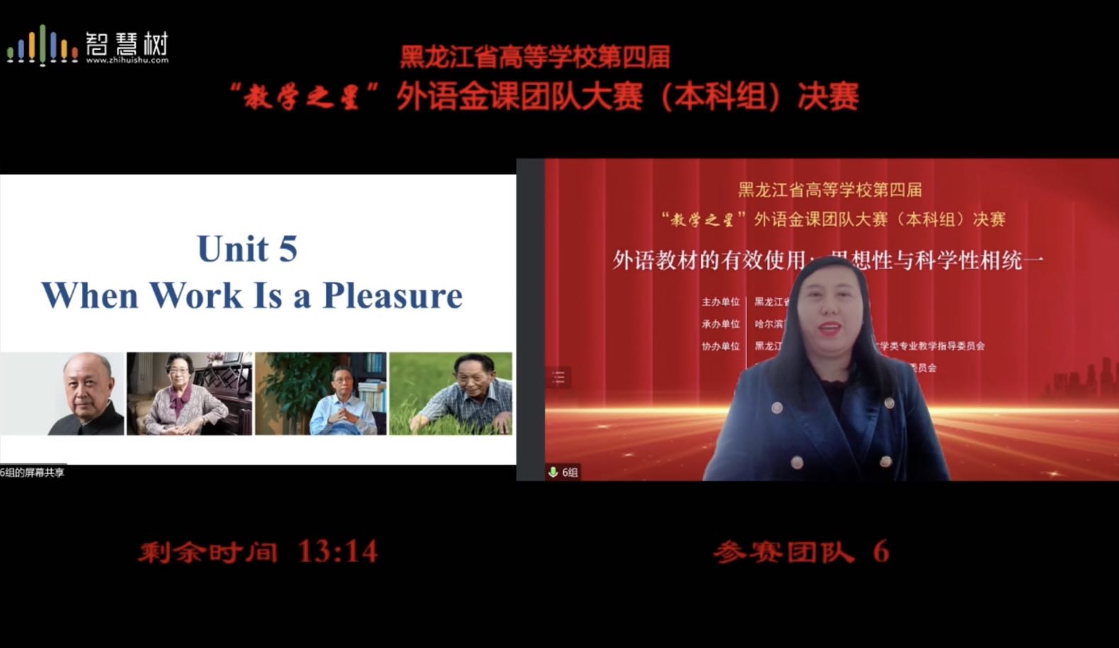 11月13日,2022年黑龍江省高等學(xué)校第四屆“教學(xué)之星”外語金課團(tuán)隊(duì)大賽(本科組)決賽落下帷幕。本屆賽事由黑龍江省教育廳主辦、哈爾濱商業(yè)大學(xué)承辦、黑龍江省外國語言文學(xué)專業(yè)教學(xué)指導(dǎo)委員會、黑龍江省大學(xué)外語教學(xué)指導(dǎo)委員會和外語教育與研究出版社協(xié)辦。賽事設(shè)置校內(nèi)選拔賽、省復(fù)賽和省決賽,全省共有31個團(tuán)隊(duì)參賽。在決賽中,應(yīng)用外語學(xué)院胥揚(yáng)、宋月霜和謝萌三位教師組成的參賽團(tuán)隊(duì),通過教學(xué)理念闡述、教學(xué)實(shí)踐展示和問答等環(huán)節(jié),與兄弟院校參賽團(tuán)隊(duì)同臺競技,榮獲一等獎。
