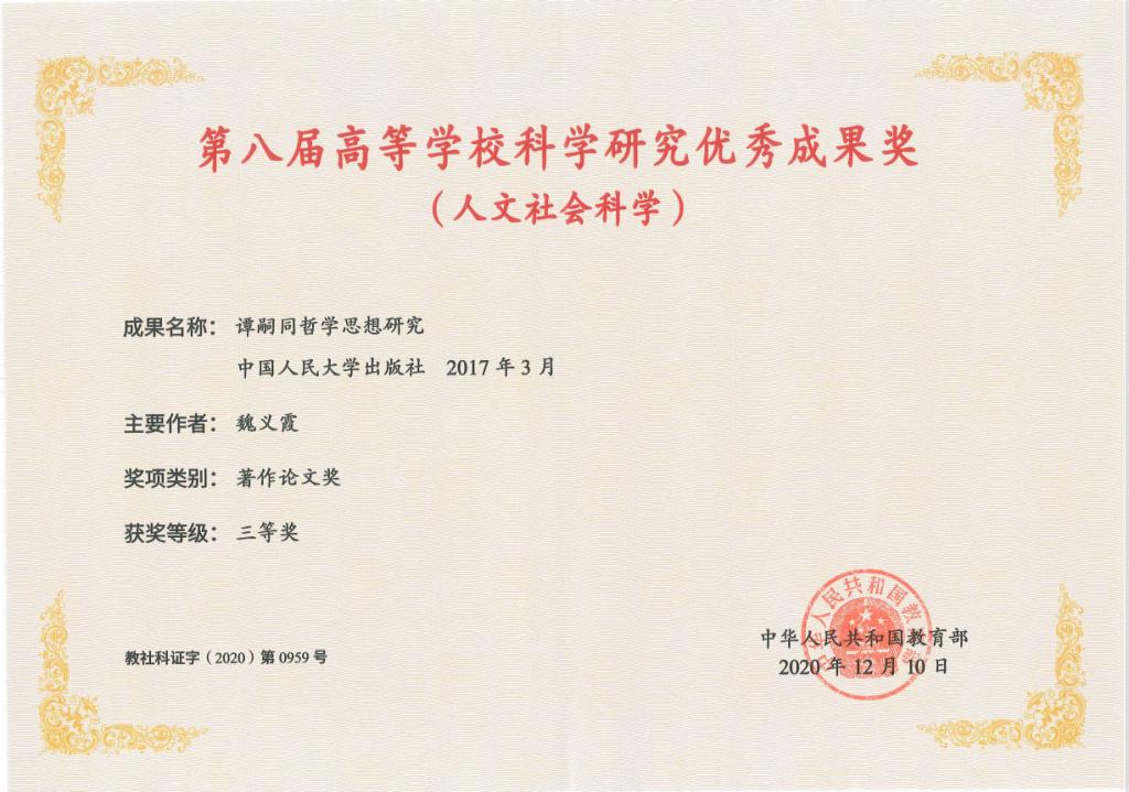 高等學(xué)??茖W(xué)研究?jī)?yōu)秀成果獎(jiǎng)(人文社會(huì)科學(xué))三等獎(jiǎng)和青年獎(jiǎng)
