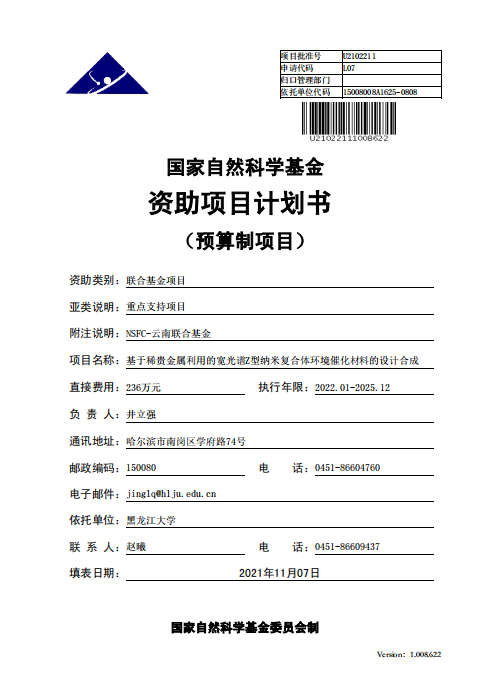 2021年,國(guó)家自然科學(xué)基金云南聯(lián)合基金,基于稀貴金屬利用的寬光譜Z型納米復(fù)合體環(huán)境催化材料的設(shè)計(jì)合成。