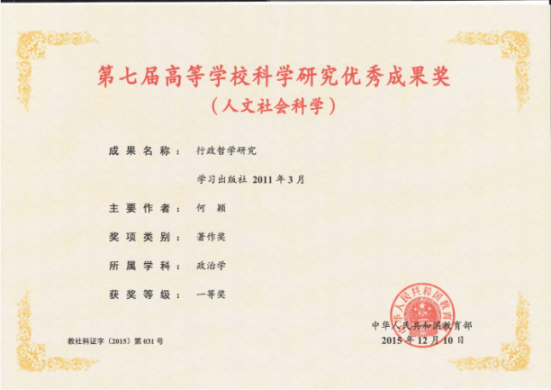 高等學(xué)??茖W(xué)研究?jī)?yōu)秀成果獎(jiǎng)(人文社會(huì)科學(xué))一等獎(jiǎng)