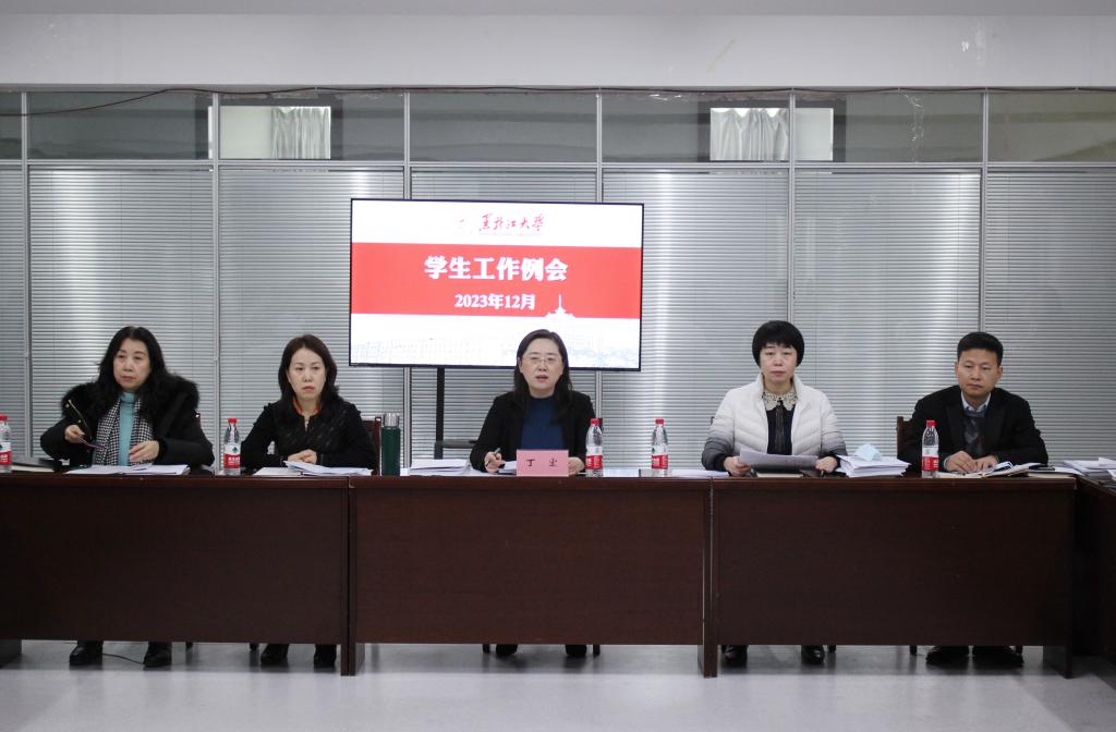 會議首先對十二月學生工作進行安排部署。校團委書記李可寶對團員和青年主題教育、紀念一二·九系列活動、優秀專職團干部評選、學生會工作考核、亞冬會志愿者招募等工作進行了部署。招生就業指導中心主任陳寶鳳重點強調了2024屆畢業生全員包保和重點群體幫扶、持續開展2023年”宏志助航計劃“全國高校畢業生就業能力培訓、大學生職業規劃大賽等工作。正處級輔導員李巾英布置了艾滋病預防教育宣傳月活動、大學生心理健康教育課程教學、朋輩心理輔導選課等工作,并強調要強化對重點學生群體的人文關懷與心理疏導,扎實做好心理危機預防與干預。學生工作部部長劉鳳影重點布置了學生安全穩定工作,要求各學院進一步做好學生意識形態工作和民族宗教工作,常態化做好安全隱患排查,加強學生安全教育,嚴格學生日常管理,扎實開展好“遵紀守法 文明修身”主題教育月系列活動。同時,詳細布置了期末考風考紀教育、“五好”寢室評選表彰等學風建設工作,梳理了學生日常思想教育、學籍管理、公寓管理、學生資助、大學生征兵、輔導員隊伍建設等相關工作任務和工作要求。