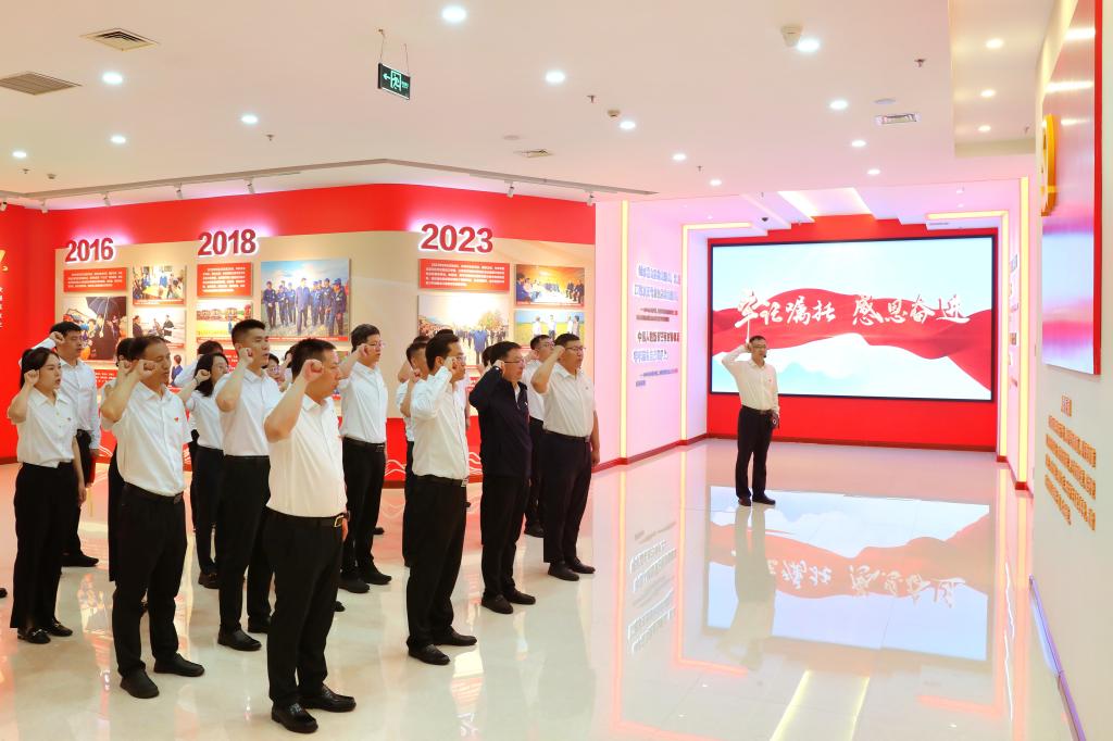 參觀結束后,全體黨員干部面向黨旗,重溫入黨誓詞。(攝影 孫晟偉)