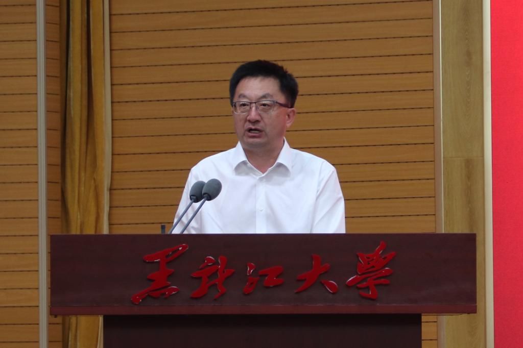 校黨委副書記李君明在致辭中介紹了黑龍江大學的發展歷程。他指出,黑大是一所擁有光榮革命傳統的高校,學校如今取得的發展成就離不開黑大人對延安精神、抗戰傳統持之以恒的堅守與傳承。英雄是中華民族的脊梁,英雄事跡和精神是激勵廣大師生前行的強大力量。他表示,本次活動能夠進一步培育廣大學子的愛國之情、筑牢廣大學子的強國之志,希望廣大師生能夠牢記烈士們的無私奉獻和大無畏的犧牲精神,傳承革命英雄的紅色故事,大力弘揚社會主義核心價值觀,為實現中華民族偉大復興而努力奮進。