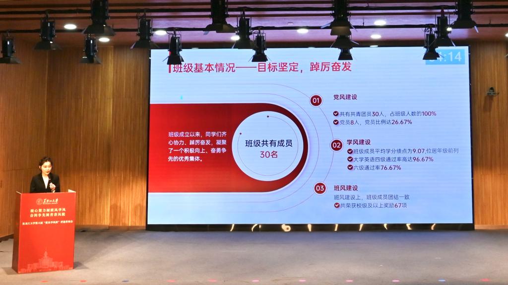 為進一步加強學風建設,充分發揮班集體在學風建設中的積極作用,激勵廣大學生勤學善思、奮發進取,主動營造“志遠行實,學而不厭”的優良學風,12月25日,黑龍江大學第六屆“優良學風班”評選答辯會在三號樓報告廳舉行。