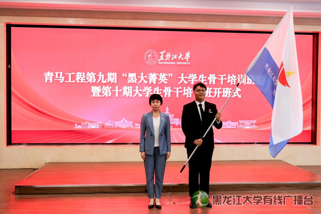校黨委副書記劉鳳影為第十期“黑大菁英”大學生骨干培訓班學員代表授旗并講話。她對第九期“黑大菁英”大學生骨干培訓班取得的豐碩成果表示了肯定,并對入選第十期培訓班的同學表示祝賀。她表示,青馬工程“黑大菁英”大學生骨干培訓班是我校認真貫徹落實團中央關于深入實施好青年馬克思主義者培養工程的具體行動。她希望同學們要筑牢信仰根基,把握人生航向;要勤學修德明辨,夯實成才基礎;要篤行時代擔當,勇擔時代重任。努力提高政治覺悟、道德修養、知識涵養、實踐素養,以實際行動踐行“請黨放心,強國有我”的莊嚴承諾,充分展現新時代黑大青年昂揚向上的精神面貌。