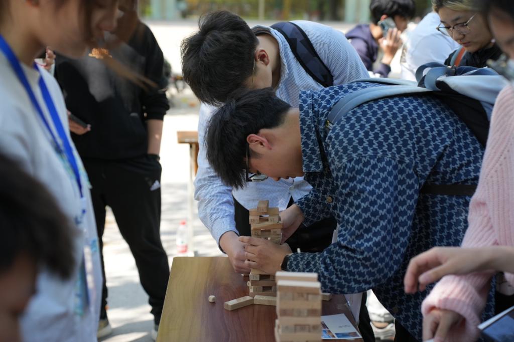 此外,活動現場還設置了富有創意的互動游戲。積木抽抽樂環節中,同學們享受著“釜底抽薪”的快樂。整個活動現場熱鬧非凡,同學們在輕松愉快的氛圍中,不僅學習到了中國傳統古建筑的知識,還提高了審美素養和動手能力。