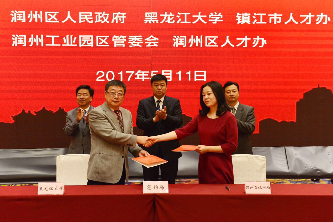 揭牌儀式后,黑龍江大學研究生學院、中俄聯合研究生學院與惠龍易通簽訂研究生工作站合作協議;黑龍江大學國際文化教育學院與潤州區旅游局簽訂“外國留學生感知中國文化體驗活動”推廣平臺框架協議。