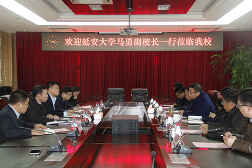 嚴(yán)明副校長(zhǎng)對(duì)馬勇副校長(zhǎng)一行的到來(lái)表示熱烈歡迎,他簡(jiǎn)要介紹了我校的歷史沿革、學(xué)科建設(shè)等方面情況,尤其是學(xué)校的對(duì)俄辦學(xué)特色。他表示,我校具有鮮明的抗大傳統(tǒng)、紅色基因,與延安大學(xué)淵源深厚,今后更要加強(qiáng)交流、精誠(chéng)合作。