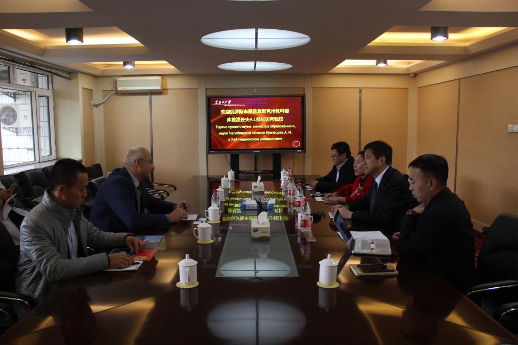 10月11日下午,俄羅斯車里雅賓斯克州教科部部長庫茲涅佐夫來我校訪問,并與學校領導在外事處一號樓4樓會議室進行座談。校黨委副書記曲科軍,國際合作與交流處相關工作人員出席座談會。