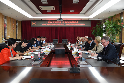 隨后,雙方就即將在我校召開的中國東北地區與俄羅斯遠東、西伯利亞地區大學聯盟執委會會議的具體問題進行商討,并就商務俄語人才培養,教師交流和學分互認,中俄學生夏令營等項目進行溝通交流。