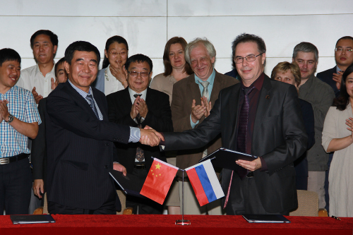 2015年9月15日下午,我校與新西伯利亞國立大學(xué)代表團(tuán)會談紀(jì)要簽約儀式在我校國際合作與交流處三號樓多功能廳舉行。校黨委書記、中俄聯(lián)合研究生學(xué)院院長劉德權(quán),新西伯利亞國立大學(xué)技術(shù)發(fā)展與外事交流副校米·米·拉夫連季耶夫率領(lǐng)的新西伯利亞國立大學(xué)代表團(tuán),中俄學(xué)院院務(wù)委員會主任、中俄聯(lián)合研究生學(xué)院常務(wù)副院長張曉光,校教務(wù)處處長蔣鯤,國際合作與交流處處長王國文,研究生學(xué)院副院長賁利等相關(guān)負(fù)責(zé)同志出席參加此次簽約儀式。會議由我校中俄學(xué)院院長賈旭杰主持。