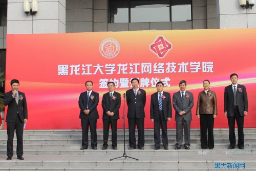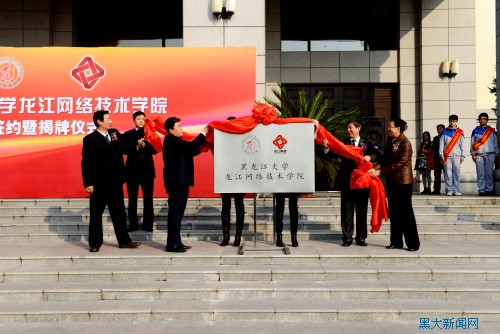 10月10日下午2時,我校與黑龍江廣播電視網絡股份有限公司合作成立龍江網絡技術學院揭牌儀式在主樓廣場舉行。省政府副秘書長王國才,省委宣傳部副部長趙德信,省廣電局副局長樊占盛,我校校長何穎、黨委副書記曲科軍,黑龍江廣播電視網絡股份有限公司董事長李錫文,龍江網絡公司和我校相關部門領導及師生代表參加了揭牌儀式。新華社、《光明日報》、中國教育電視臺、黑龍江電視臺、《黑龍江日報》、東北網等多家媒體對此次活動進行報道。