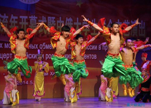 演出活動中,中俄兩國青年表演了異彩紛呈的文藝節目。由黑龍江大學藝術團帶來的開場舞《中俄芭比》以中國娃娃和俄羅斯娃娃獨具兩國特色的造型、服裝和豐富的舞蹈情節,表現了中俄兩國青年學生的青春風采和活力。來自布拉戈維申斯克師范大學的俄羅斯美女演唱了中文歌曲《你是我的玫瑰花》,歌曲熱情洋溢,唱出了不同的感覺,由該校帶來的舞蹈《俄羅斯組舞》也同樣精彩。東北農業大學、哈爾濱師范大學和哈爾濱學院也表演了各具特色的節目,無論是穿著民族服飾和古代服裝的舞蹈《中國美》,還是結合舞劍、太極的武術《鐵血丹心》都引起了場下的掌聲和歡呼。