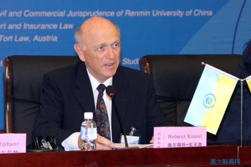 世界著名法學(xué)家、奧地利維也納大學(xué)法學(xué)院海爾穆特.庫齊奧教授致辭