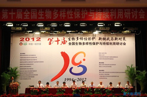 8月21日上午8點半,第十屆全國生物多樣性保護與持續(xù)利用研討會在我校音樂廳隆重開幕。黑龍江省政協(xié)副主席趙雨森、國家林業(yè)局野生動植物保護與自然保護區(qū)管理司司長張希武、教育部科學(xué)技術(shù)委員會副主任吳常信、東北林業(yè)大學(xué)院士馬建章、中國科學(xué)院微生物研究所院士莊文穎、中國科學(xué)院生命科學(xué)與生物技術(shù)局副局長蘇榮輝、國家環(huán)境保護部自然生態(tài)保護司處長張文國、住建部城市建設(shè)司處長王香春、黑龍江省科學(xué)院副院長郭春景、中國生物多樣性保護與綠色發(fā)展基金會副會長張佐雙等出席開幕式,我校副校長付宏剛參加會議。開幕式由中科院生物多樣性委員會副主任馬克平主持。