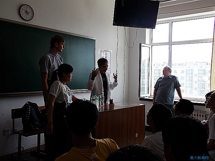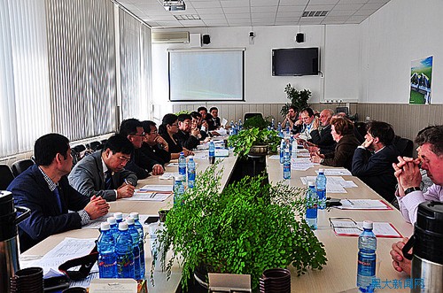 為進一步明確和落實此次會議的內容,加強兩校間的務實合作,6月25日,俄羅斯新西伯利亞國立大學外事處長Е?И?薩蓋達科率該校六個系負責人以及遠程教育平臺建設專家一行14人對我校進行了回訪。張政文校長、張曉光校長助理及教務處、研究生學院、中俄學院、化學化工與材料學院、生命科學學院、數學科學學院、經濟與工商管理學院、法學院、物理科學學院領導接待俄方代表團,并就中俄學院本科生聯合培養工作以及派遣教師來華授課的具體細節問題進行了會談,會談中雙方確定了最終的聯合培養方案、第四學期俄方派遣教師時間表、講授課程的考試問題、遠程教育平臺的使用、各個專業合編教材的編寫原則、內容等問題,明確了俄方教師在華培訓時間、周期及考試方式,初步確定了合編教材的名稱和工作進度。此外,俄方代表團還與中俄學院學生進行了座談,就專業課的學習內容與學生進行了溝通。