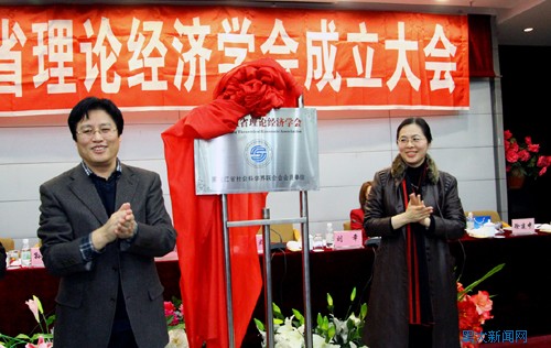隨后,劉幸副主席,丁立群副校長,孫儉太副局長和焦方義教授共同揭牌,黑龍江省理論經濟學會正式成立。