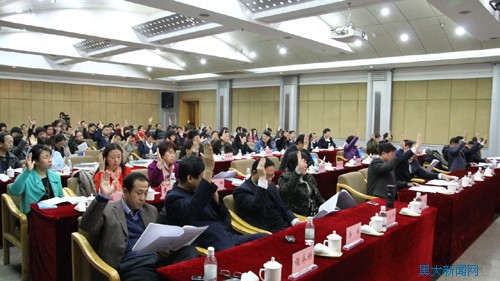大會第二階段由哈爾濱理工大學管理學院院長、博士生導師修國義教授主持。在哈爾濱工程大學經濟管理學院博士生導師徐建中教授解讀了《黑龍江省理論經濟學會章程(草案)》后,現場選舉產生了學會理事會及領導機構。