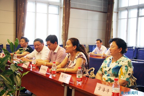其間,蔣鯤處長向努爾馬娜提團長一行介紹了學員在我校學習、生活的具體情況,并專門就課程安排、學時設置、日常管理和活動等方面做出了詳細說明。蔣鯤處長委托努爾馬娜提團長向清河人民轉達黑大師生的問候,他說,黑龍江大學將專心致力于阿勒泰學員的成長成才,努力為其提供最優質的教育教學資源,圓滿完成上級領導下達的援疆培訓任務。