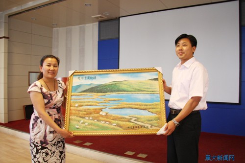 努爾馬娜提團長代表清河縣政府表達了對黑龍江大學的感謝。她說,組織實施普通高校畢業生赴援疆省市培養,是自治區在“民生建設年”里實施的一項重點民生實事項目。此次在黑龍江大學接受培訓的26名清河縣學員,是通過自身努力和組織挑選,光榮地獲得這樣的機會與機遇,他們身上肩負著個人的夢想、家庭的希望,更肩負著家鄉的未來和新疆的未來。努爾馬娜提團長誠懇地表示,清河縣是國家級貧困縣,其中76%的人口為哈薩克族。作為一個成熟的少數民族,哈薩克族人民對先進知識和文化充滿了熱切的渴求,并視其為改變貧困現狀的唯一途徑。她說,因為有黨和政府的援疆好政策,窮山溝里的孩子才能走出來,學習知識,開闊眼界,增長才干;清河縣和黑龍江省這身處祖國一西一東的兩地,才能牽起一段無私援助的情誼。她真誠祝愿兩地人民的友誼地久天長,并鼓勵學員們胸懷感恩,努力學習,學有所成,回報家鄉和祖國。