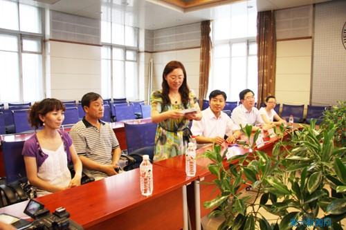 6月18日下午,我校主樓260會議室里洋溢著濃濃的喜悅和溫情,在我校培訓學習的阿勒泰地區清河縣學員手捧著來自家鄉縣政府的慰問信,正在認真閱讀著。將這份囑托與祝福帶給學員們的,是由清河縣縣委、縣政協、衛生局、總工會四套班子及相關人員組成的黨政代表團。代表團一行八人,在團長、清河縣縣委常委努爾馬娜提的帶領下,于下午四時三十分抵達我校。校教務處處長蔣鯤,學工部部部長丁宏,教務處副處長張少杰及負責此次培訓工作的教學秘書李雪松、專職輔導員鄭建華接待了代表團。