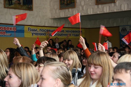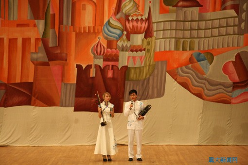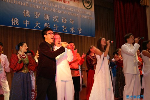 俄中大學生藝術節(jié)上中俄學生共唱《真心英雄》