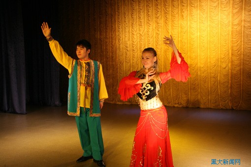 黑大藝術團的姑娘們通過柔美的舞蹈讓丁香花綻放在伊爾庫