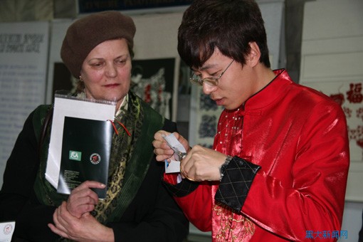 賈旭杰教授在演出中介紹中國的剪紙藝術