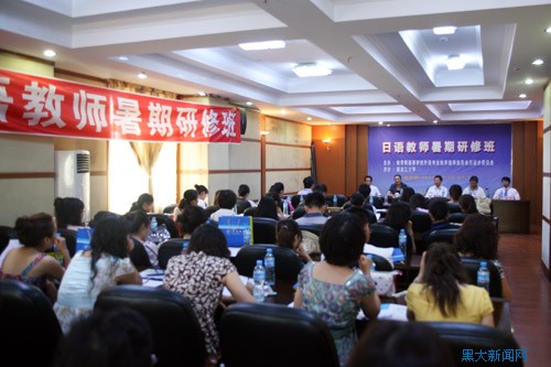 7月20日上午,由教育部高等學校外語專業教學指導委員會日語分委員會主辦、我校東語學院承辦的“日語教師暑期研修班”在c區留學生公寓會議室隆重開班。教育部高等學校外語專業教學指導委員會日語分委員會的相關專家學者、我校副校長何穎、我校東語學院院長陳百海及來自河南、河北、遼寧、吉林、黑龍江等地30余所高校的60余名日語專業教師出席了開班儀式。