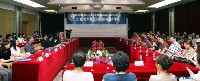 6月10日上午,2009年夏季漢語研修項目開學式在我校外事處多功能廳舉行,校長助理、國際文化教育學院院長張曉光,副院長王國文,研修項目美方協調人Jay McDaniel等出席開學式。